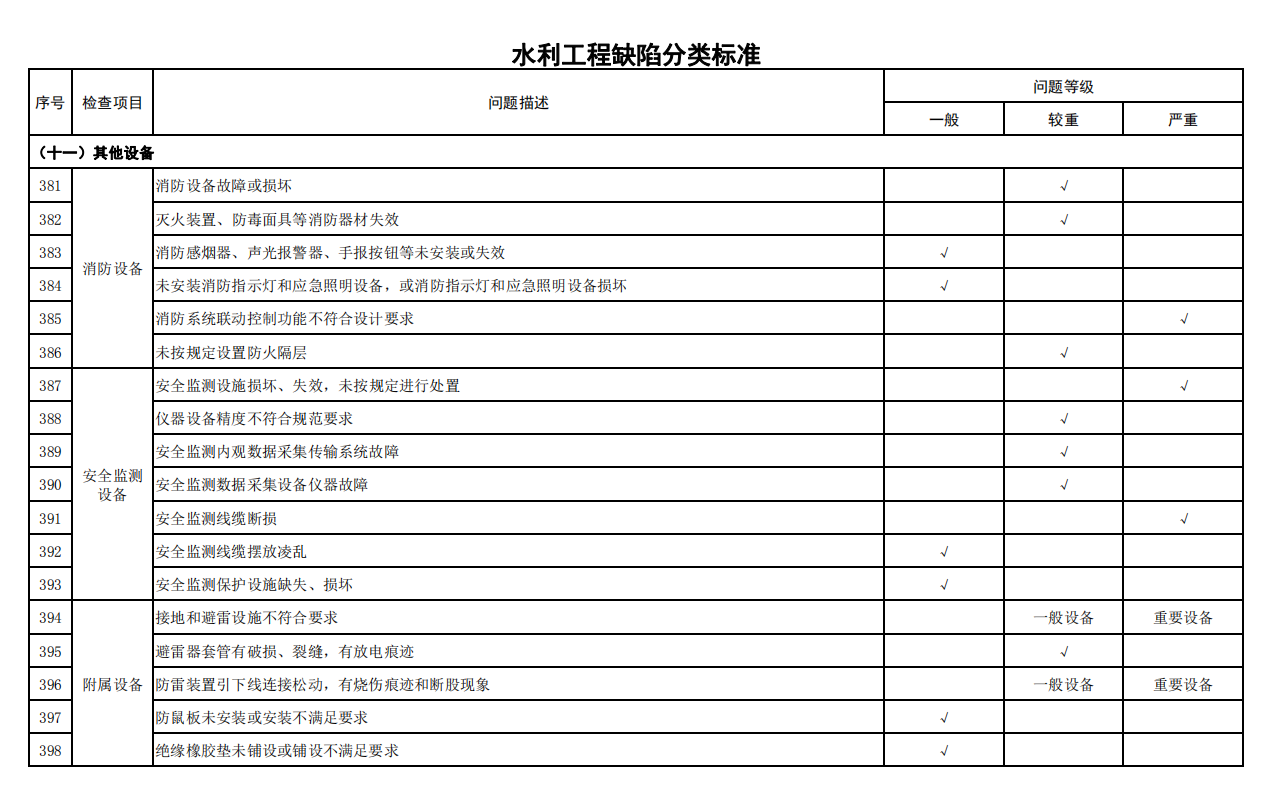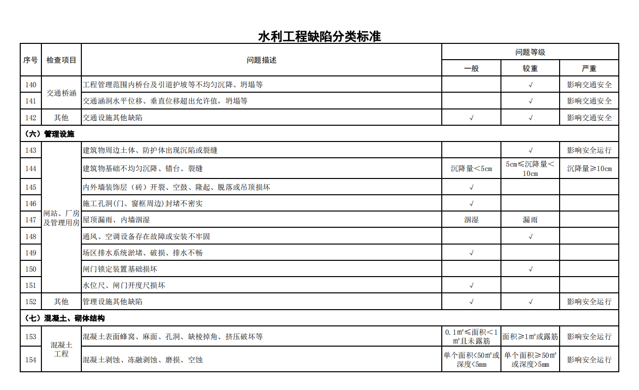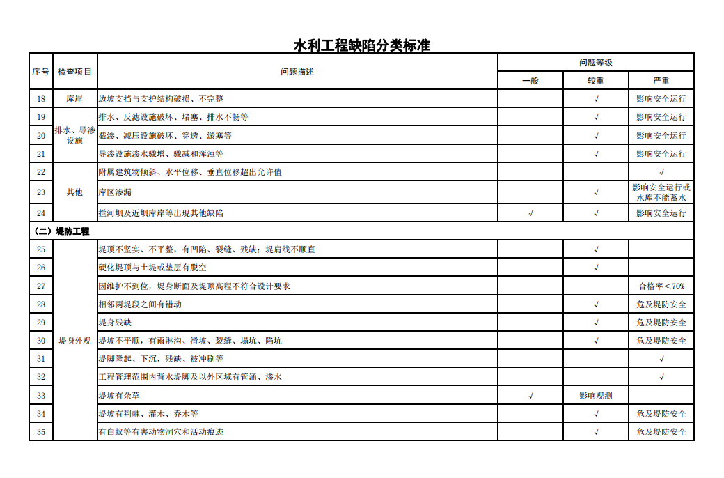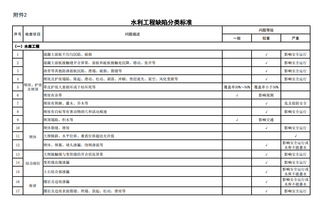 2.水利工程缺陷分類標準