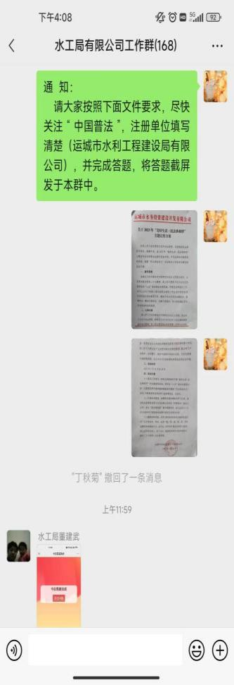 為加大《民法典》宣傳,努力讓每一名干部職工走進(jìn)民法典、了解民法典、運(yùn)用民法典,切實(shí)增強(qiáng)廣大干部職工的法治意識(shí)和法治信仰,5月29日運(yùn)城市水利工程建設(shè)局有限公司組織干部職工開展2023年“美好生活•民法典相伴”主題活動(dòng)。活動(dòng)現(xiàn)場(chǎng)傳達(dá)了運(yùn)城市水務(wù)投資建設(shè)開發(fā)有限公司《關(guān)于2023年“美好生活•民法典相伴”主題宣傳方案》,并向大家介紹了民法典的重要意義?;顒?dòng)中干部職工積極關(guān)注“中國普法”,注冊(cè)賬號(hào)并進(jìn)行了答題。此次活動(dòng)激發(fā)干部職工主動(dòng)學(xué)習(xí)法律知識(shí),增強(qiáng)了用法治思維和法治方式解決問題的能力。