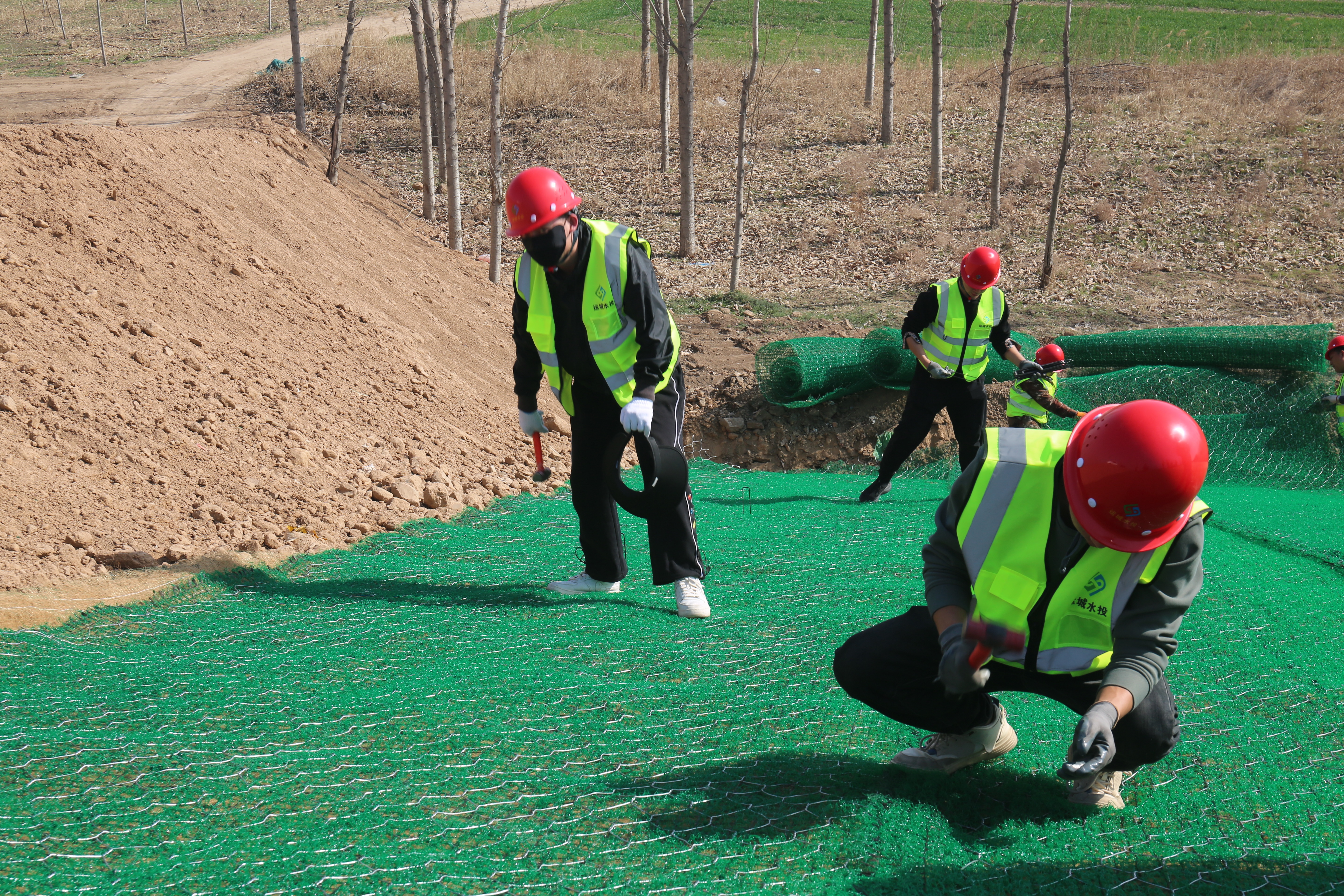 為全面落實(shí)重點(diǎn)工作目標(biāo),確保工程按期完成,市水投公司水工局有限公司的60余名在職員工駐扎一線,立足崗位,設(shè)定目標(biāo),成立專(zhuān)班,分組實(shí)施。他們相互協(xié)作,用雙腳丈量著責(zé)任和擔(dān)當(dāng),用雙手鋪設(shè)著生態(tài)護(hù)坡的“自然之美”。