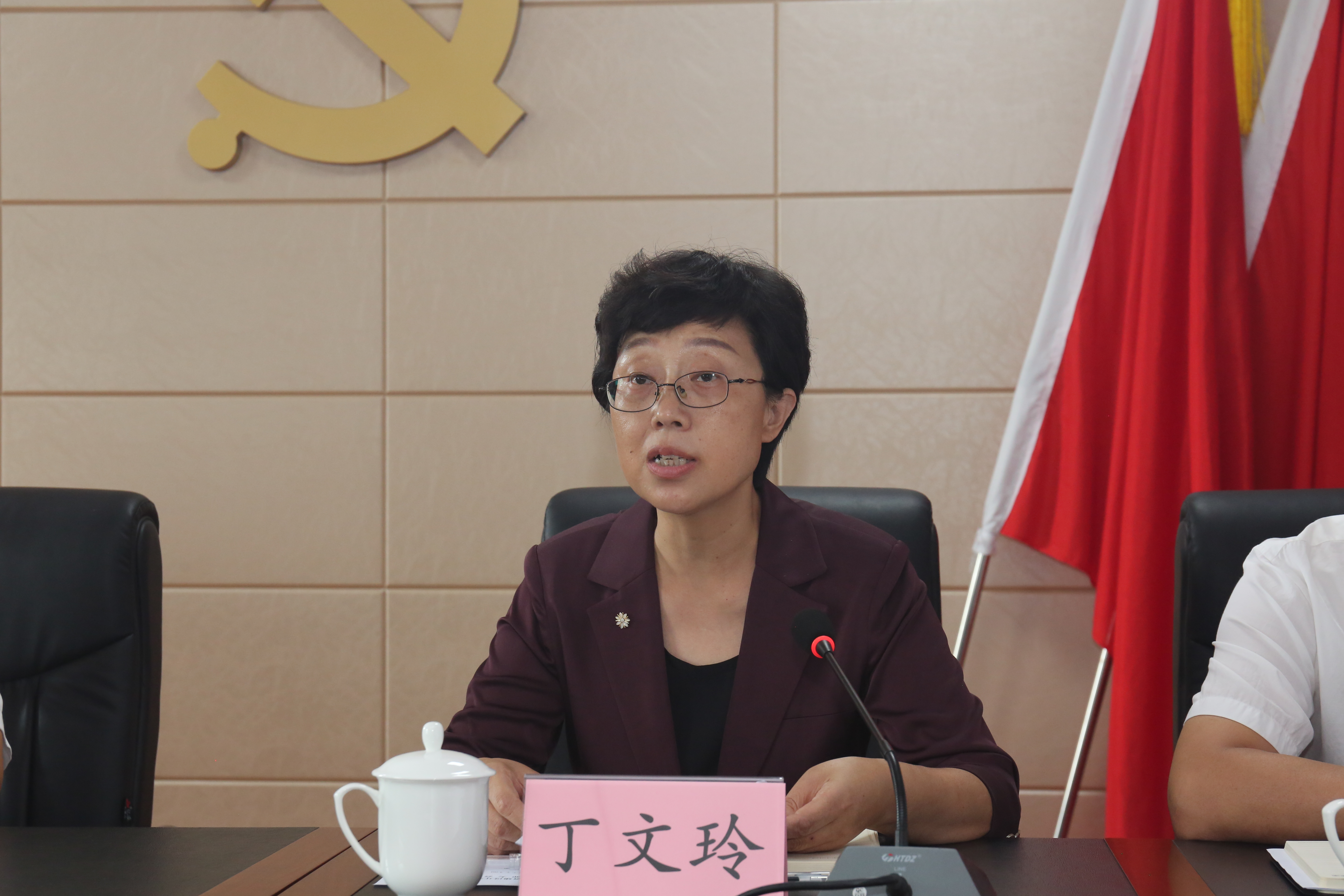 丁文玲宣讀了市委關于薛文兵同志任市水投公司黨委書記的通知。