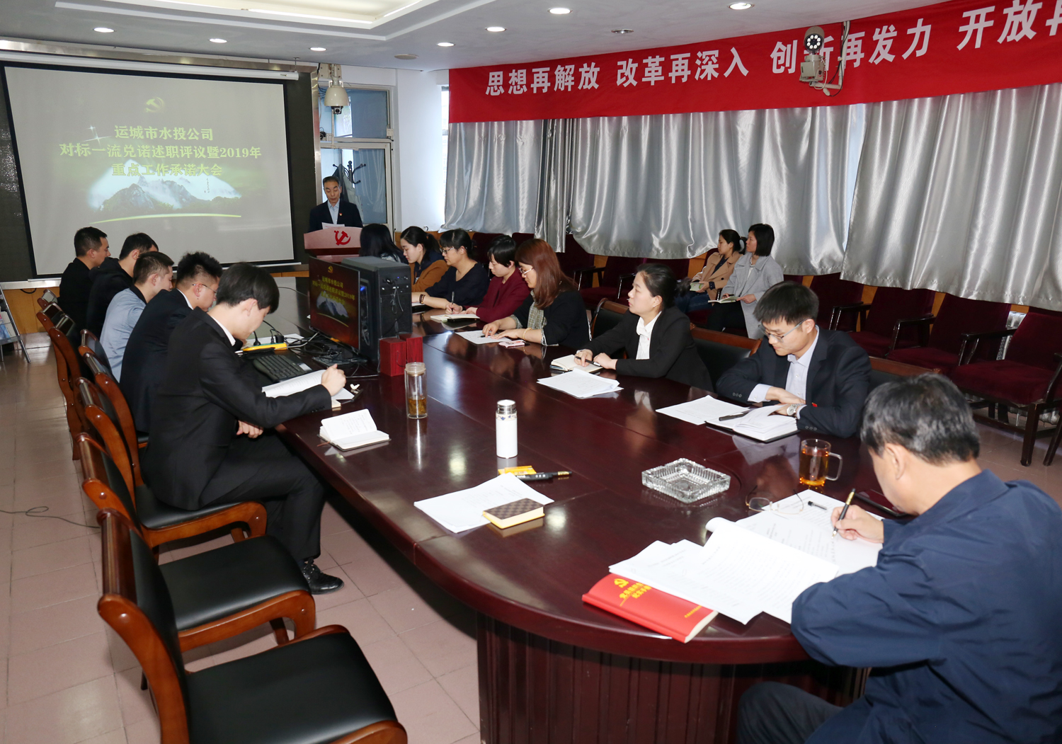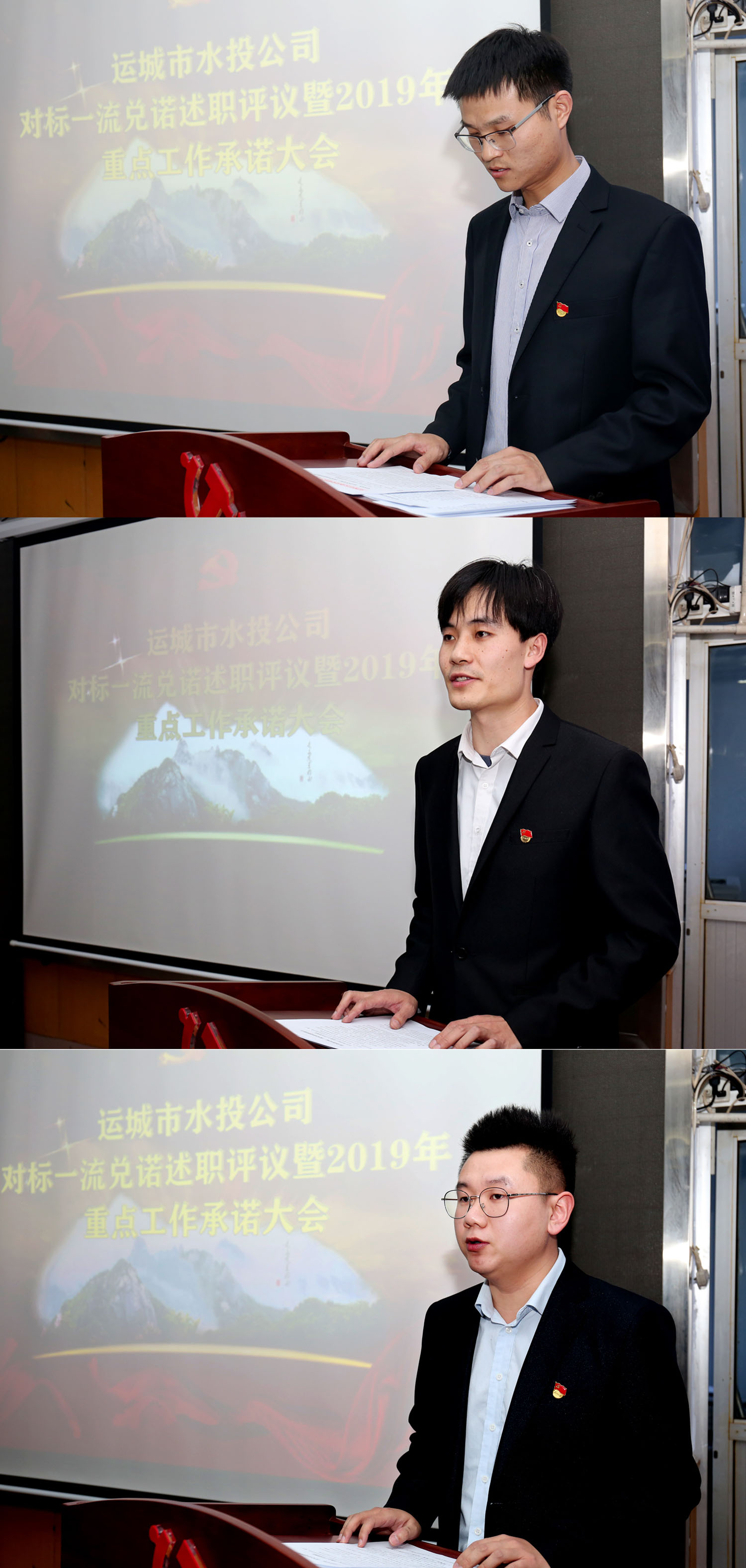 會(huì)上,領(lǐng)導(dǎo)班子副職和黨辦、綜合辦、財(cái)務(wù)部、工程部主要負(fù)責(zé)人圍繞2018年年初承諾事項(xiàng)兌諾述職,就2019年重點(diǎn)工作向公司黨委、董事會(huì)和全體員工進(jìn)行公開承諾。公司班子成員進(jìn)行了點(diǎn)評,參會(huì)人員進(jìn)行了述職測評。